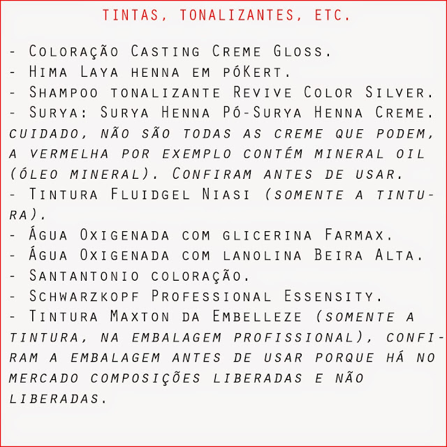 Todas as marcas e produtos aqui postados tem como fonte a lista liberada pela moderação Low / No Poo. Em todos os posts marquei o mesmo link porém informando as páginas direto para o assunto. Gostaria de agradecer pela moderação por listar tantas marcas e produtos liberados para o método.
