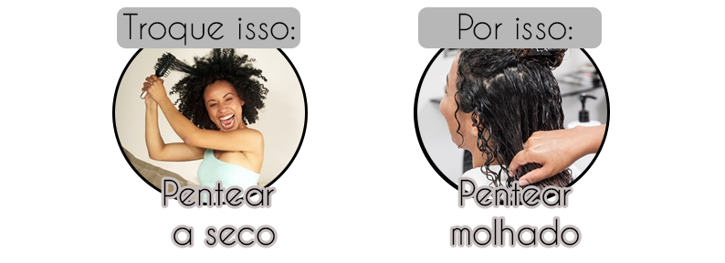 – Pentear molhado, você pode fazer isso durante a aplicação da mascara, do condicionador ou finalizando o cabelo.